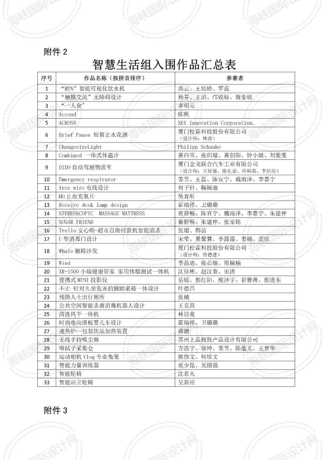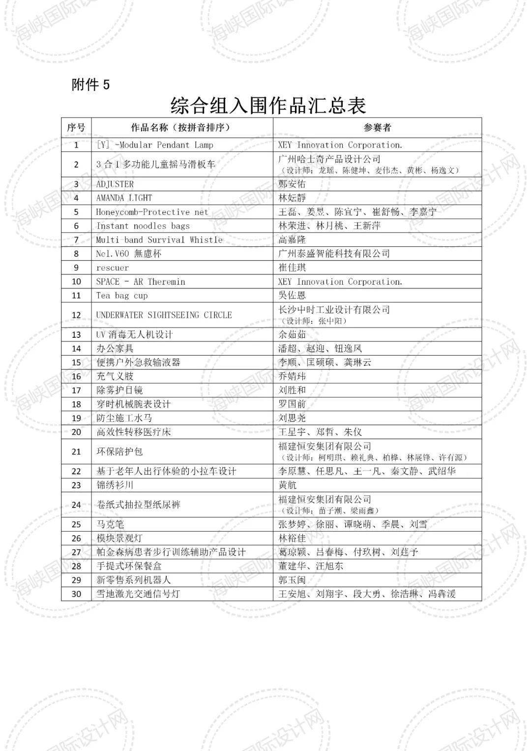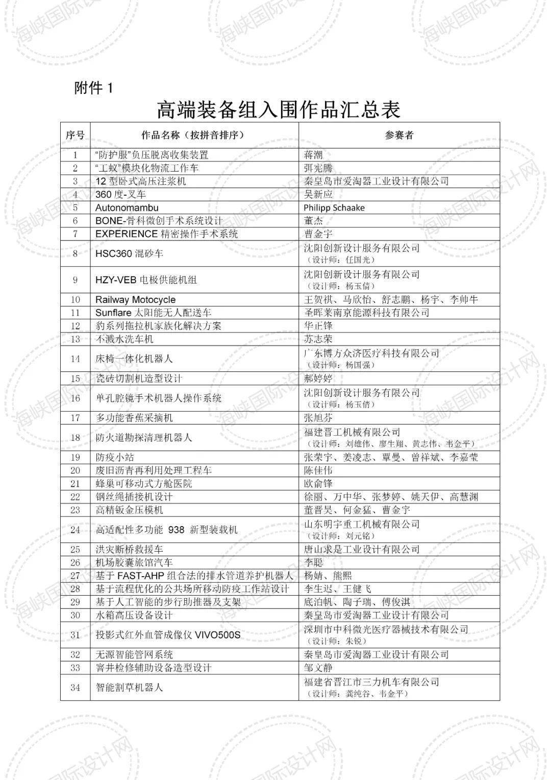 2020年11月18日—11月22日,第七屆“海峽杯”工業(yè)設(shè)計(jì)(晉江)大賽組委會(huì)在大賽官網(wǎng)上對(duì)高端裝備組39件、智慧生活組35件、服裝組40件、鞋類(lèi)組40件、綜合組36件擬入圍終評(píng)作品進(jìn)行了公示。期間,收到熱心人士異議反映。在大賽評(píng)獎(jiǎng)監(jiān)督組監(jiān)督下,組委會(huì)辦公室會(huì)同大賽評(píng)獎(jiǎng)工作組對(duì)異議作品進(jìn)行了認(rèn)真核查,決定取消“與已發(fā)表的作品相同或近似”、“曾經(jīng)在其他工業(yè)設(shè)計(jì)大賽上獲獎(jiǎng)”等作品的入圍資格,同時(shí),個(gè)別作品參賽者自動(dòng)棄權(quán),組委會(huì)辦公室也一并對(duì)作品參賽信息進(jìn)行核實(shí),最終確定高端裝備組34件、智慧生活組33件、服裝組38件、鞋類(lèi)組38件、綜合組30件作品入圍?,F(xiàn)將入圍作品名單公布如下: