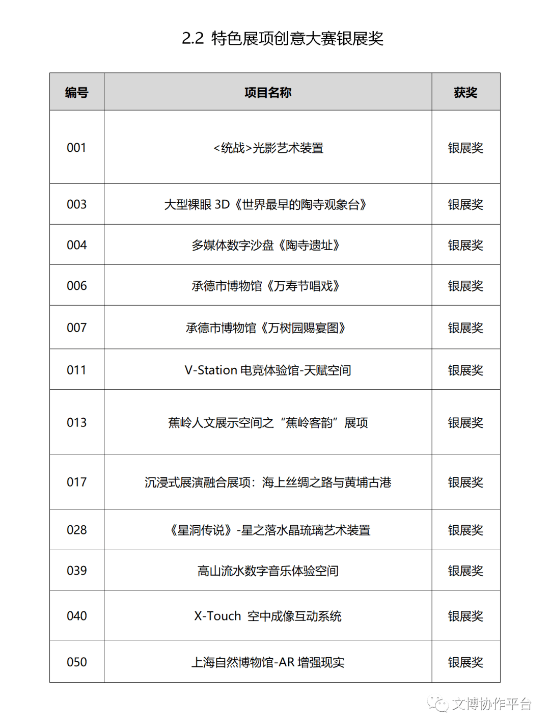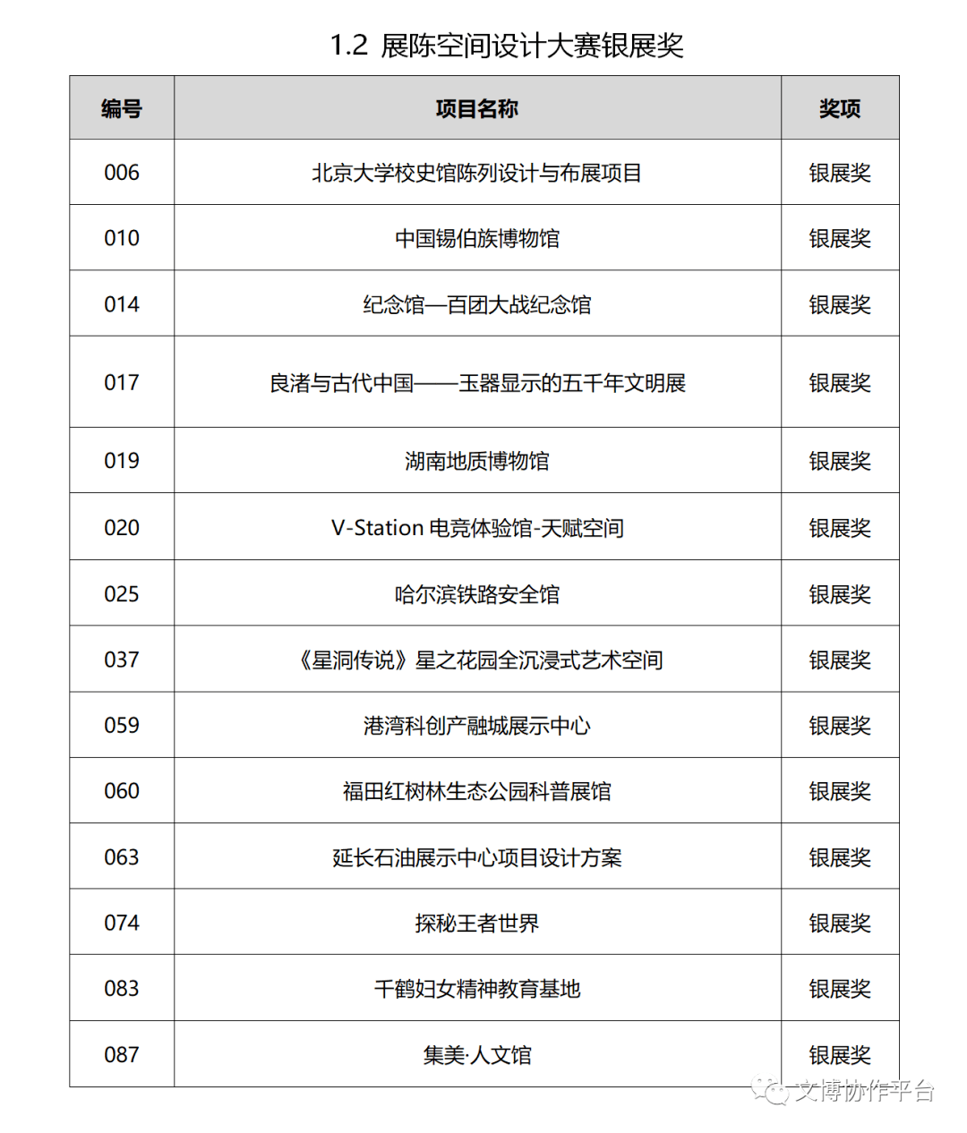 根據(jù)《評審辦法》規(guī)定,獲獎候選名單經(jīng)“展陳創(chuàng)意大賽”主席團審核,參考兩項賽事入圍作品數(shù)量及終審?fù)镀迸琶罱K產(chǎn)生展館空間設(shè)計創(chuàng)意大賽金展獎11名,銀展獎14名;特色展項創(chuàng)意大賽金展獎10名,銀展獎12名。