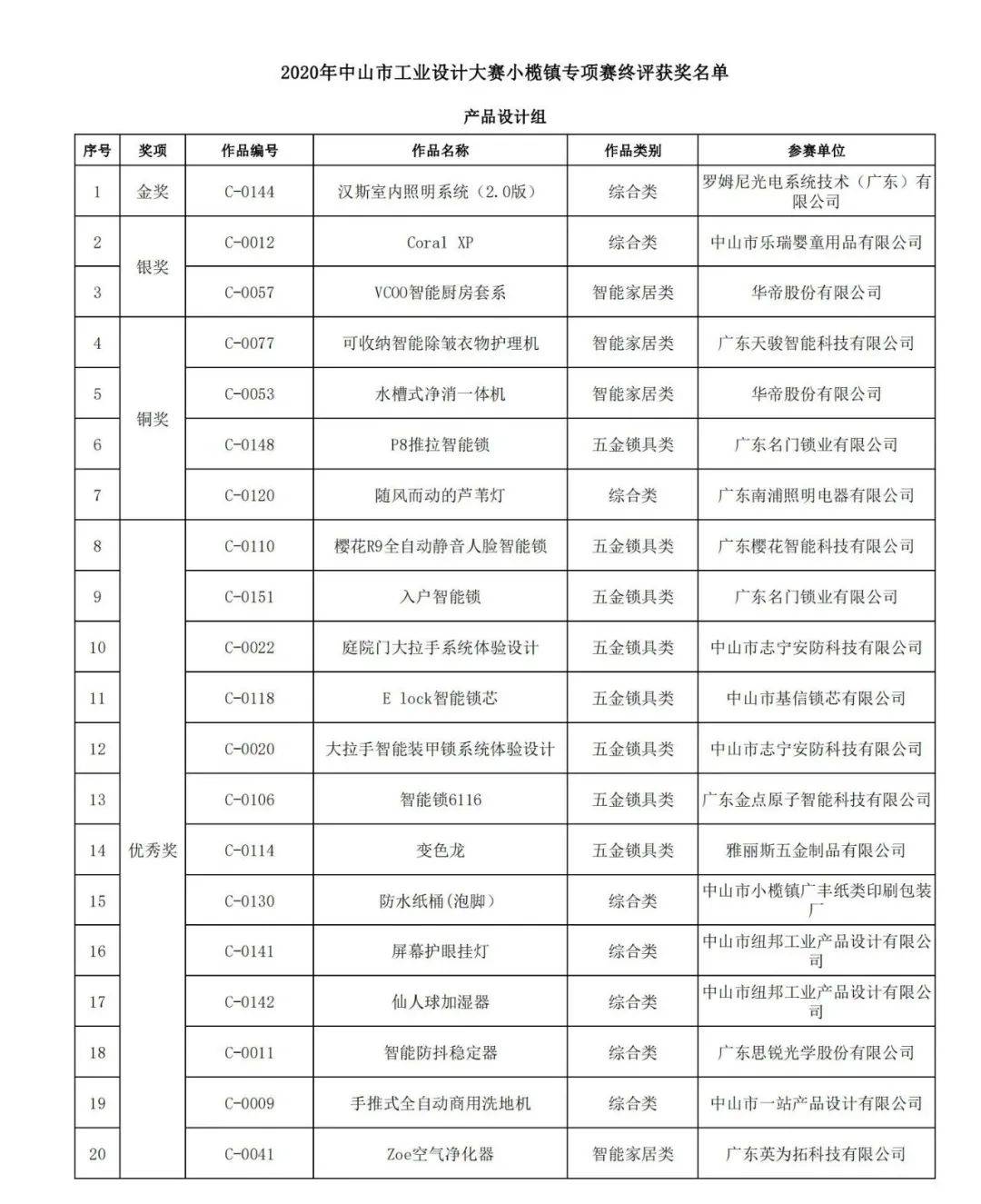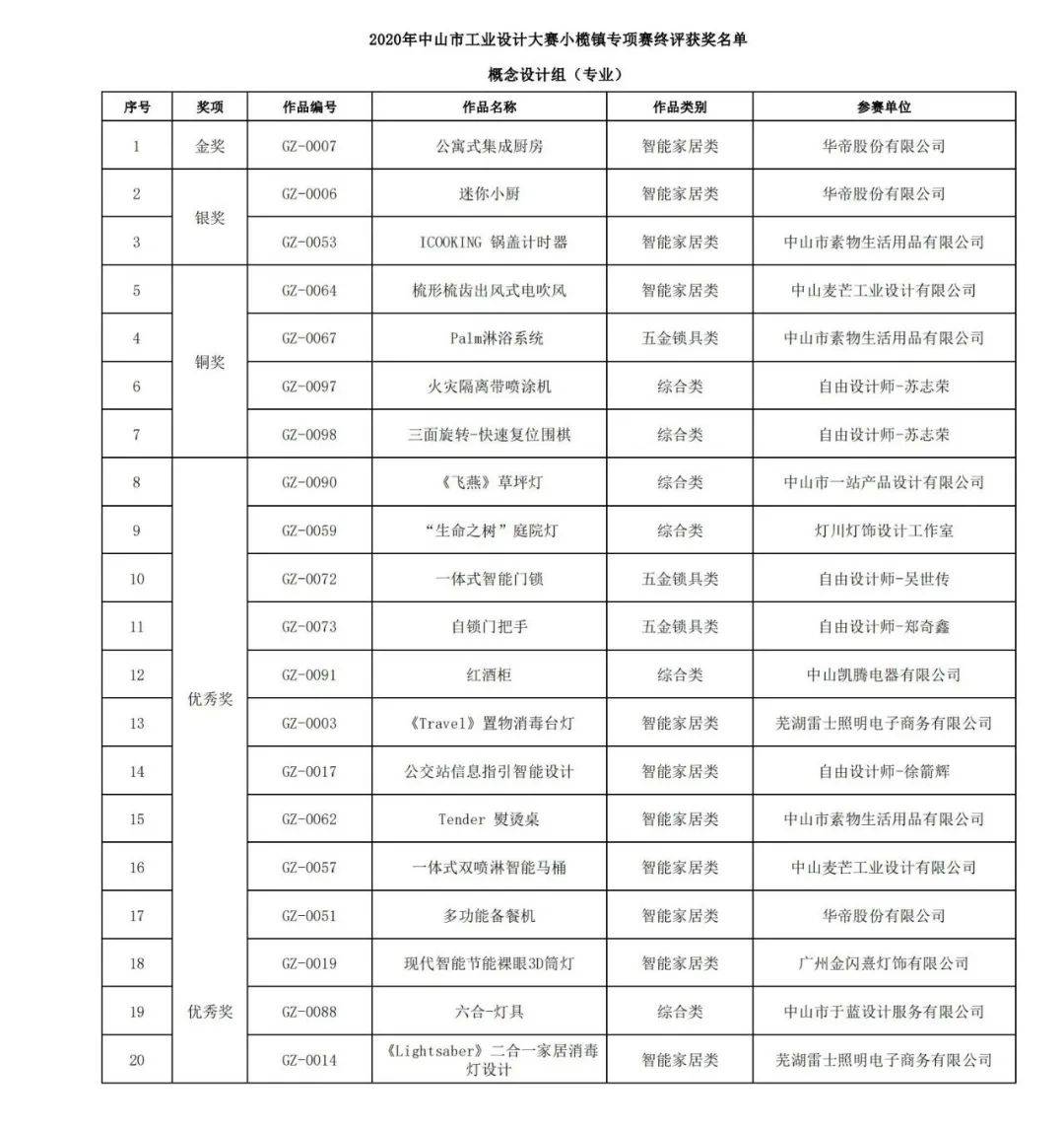 附件:中山市工業(yè)設(shè)計(jì)大賽小欖鎮(zhèn)專項(xiàng)賽終評(píng)獲獎(jiǎng)名單