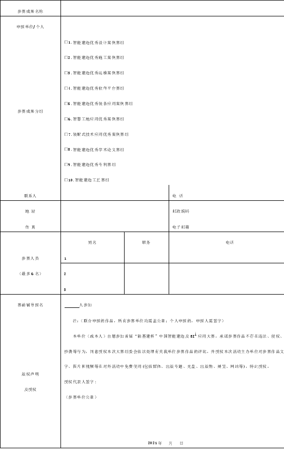 為保證提交作品的質(zhì)量和統(tǒng)一規(guī)范,熟悉評選細(xì)則,大賽組委會(huì)擬于2021年4月15日至4月20日組織賽前輔導(dǎo)和培訓(xùn),各參賽單位有意愿參與的請?jiān)谔顚憛①悎?bào)名表時(shí)勾選。