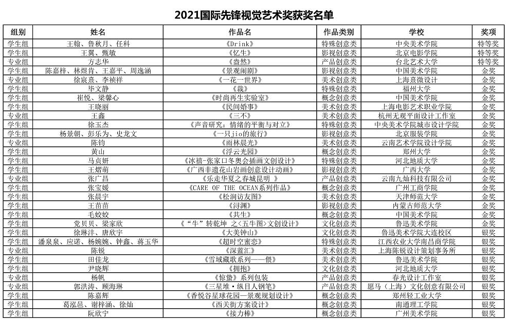 各院校、設(shè)計師: 自大賽征稿以來,共計收到有效稿件1405件,經(jīng)過一周的評審,共選出獲獎作品200余件。未盡事宜,請咨詢:pioneerart2021@163.com