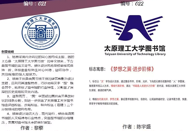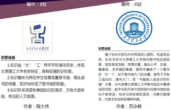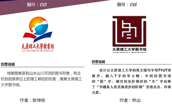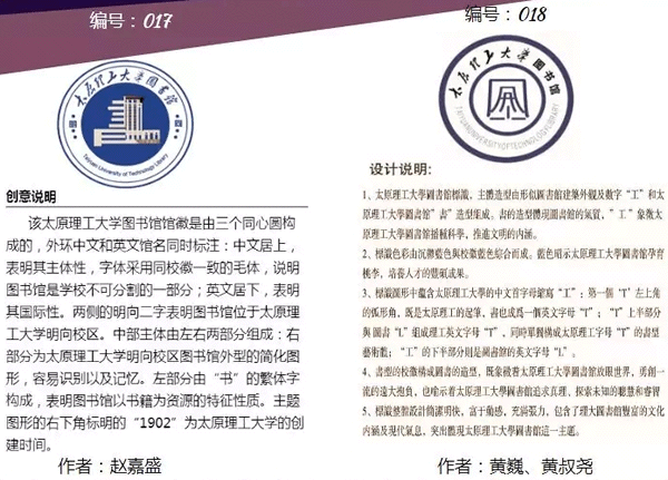 太原理工大學明向校區(qū)圖書館新館即將投入使用。為弘揚百年歷史傳承精神,表達現(xiàn)代圖書館文化內(nèi)涵 ,配合明向校區(qū)新館落成啟用,圖書館2019年1月15日面向全國啟動了“館徽”征集活動,得到了廣大設計人員的支持。征集作品經(jīng)評審委員會初評,共評選出22份作品入圍網(wǎng)絡投票評選環(huán)節(jié),最終將根據(jù)網(wǎng)絡投票結(jié)果及評審委員會綜合評審,評選出獲獎作品。?