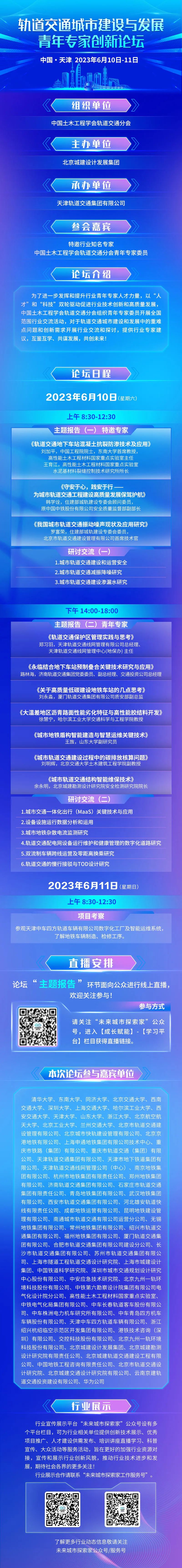 直播通知丨6月10日 軌道交通城市建設(shè)與發(fā)展青年專家創(chuàng)新論壇