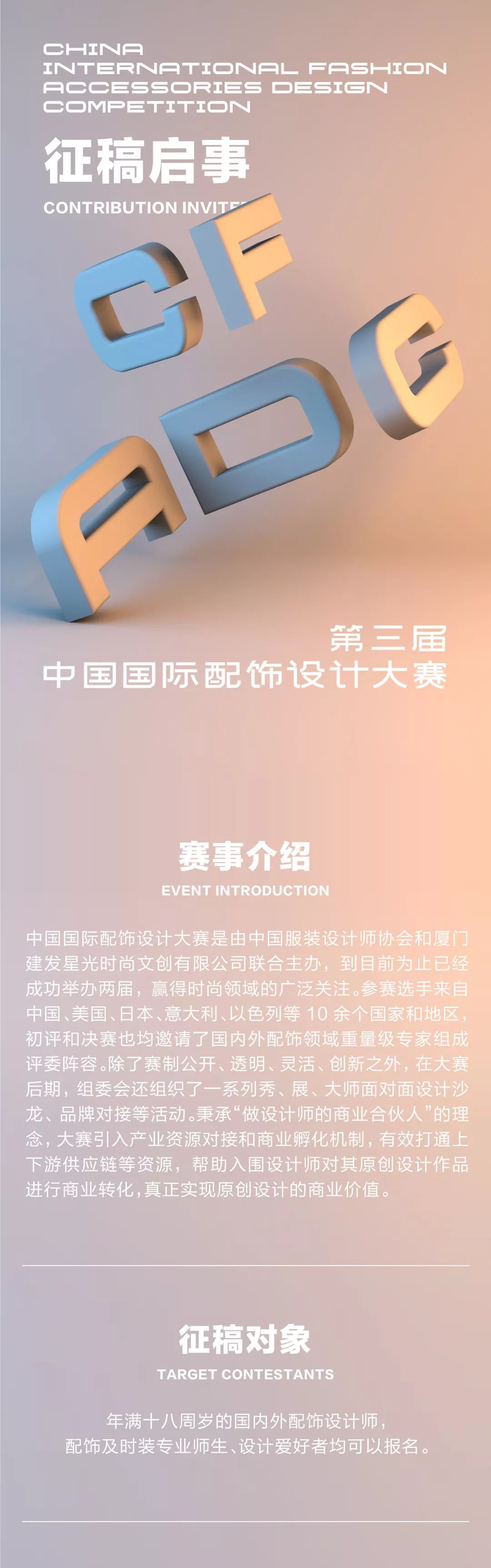 經(jīng)過近半年的打磨籌備,第三屆中國國際配飾設(shè)計大賽全球征稿如期而至。