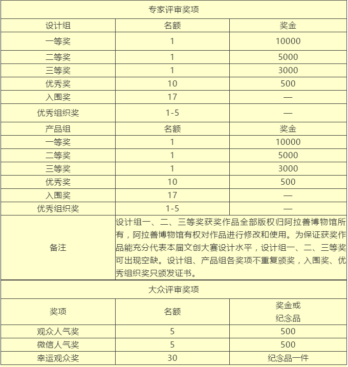 征集結束后,大賽組委會將邀請博物館、藝術設計、文創(chuàng)產品等方面的專家組成評委會,按照“公平、公正、公開”的原則對投稿作品進行評選,并將獲獎結果在阿拉善盟文化旅游廣電局官方網(wǎng)站和阿拉善博物館官方微信上予以公示。