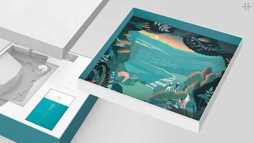 以此為出發(fā)點(diǎn),設(shè)計(jì)師為客戶設(shè)計(jì)了一款禮盒、一套水架、一份產(chǎn)品手冊(cè),設(shè)計(jì)統(tǒng)一延續(xù)品牌色及品牌屬式,強(qiáng)化品牌印象。將插畫運(yùn)用于禮盒內(nèi),增加品牌的文化感和體驗(yàn)感。采用兩種材質(zhì),設(shè)計(jì)成兩款水架,面向不同審美偏好的消費(fèi)人群。簡(jiǎn)便輕巧的亞克力板,便于消費(fèi)者輕松裝卸。