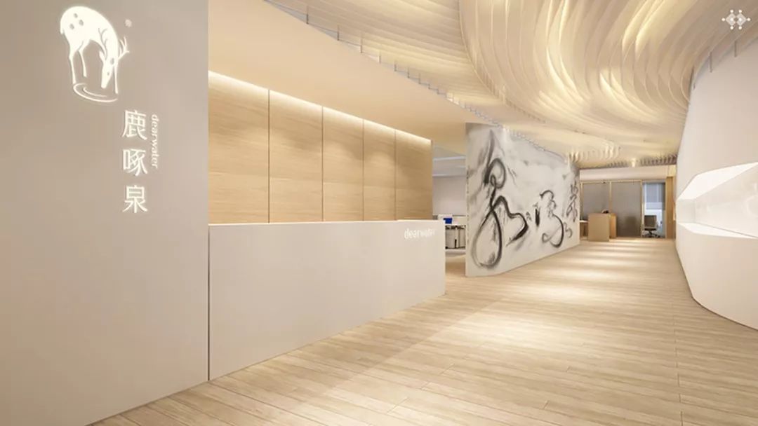 在辦公空間設(shè)計(jì)上,延續(xù)品牌現(xiàn)代簡(jiǎn)潔、自然清新的風(fēng)格,抽取LOGO中的“漣漪”圖形,使空間富有多層次的光感和流動(dòng)感。由靳埭強(qiáng)先生親筆題書的“鹿啄泉”三個(gè)字是空間內(nèi)的點(diǎn)睛之筆,水墨暈染,波紋流轉(zhuǎn),意與境融合呼應(yīng)。