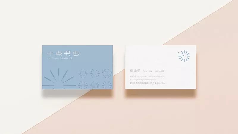 設(shè)計(jì)師提取了最直觀的十點(diǎn)鐘作為基礎(chǔ)視覺(jué)形象,在設(shè)計(jì)概念演繹上,取意“文化蒲公英”,即十點(diǎn)書店如同一朵隨風(fēng)起舞的蒲公英,柔軟又富有生命力;是文化的孕育者,也是文化的傳播者。十點(diǎn)鐘既直抒胸臆,亦是文化蒲公英的縮影;書籍是時(shí)間的刻度,亦是文化的種子。簡(jiǎn)潔的形式讓標(biāo)志擁有更多的包容性,滿足在店中其他板塊的延展應(yīng)用。