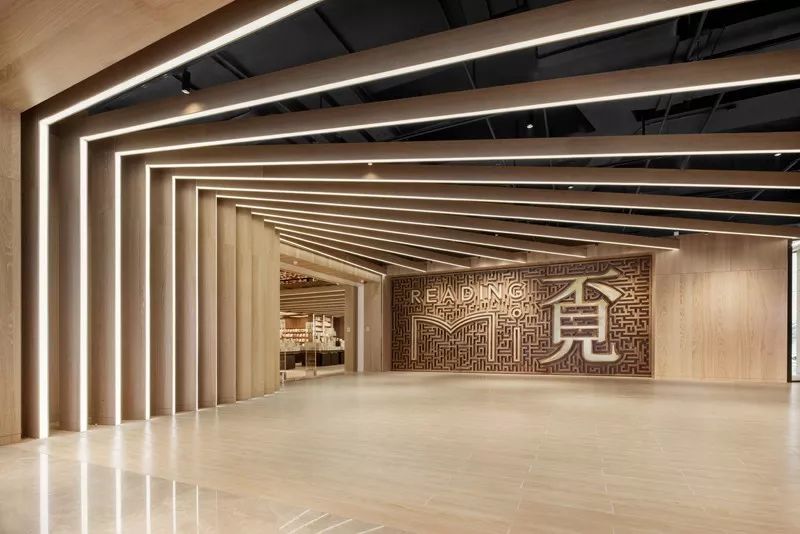 通道蔓延交匯,將人們引領(lǐng)至覔書店?yáng)|莞國(guó)貿(mào)城店的獨(dú)特印記——「聚光堂」(Hall of Enlightenment)。