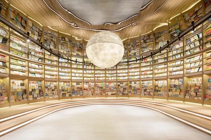 書籍包裹的環(huán)形空間,靈感來(lái)自于古希臘的下沉劇場(chǎng)及古羅馬的元老院,人們常被那個(gè)時(shí)代忘我、求真的智慧曙光所吸引,設(shè)計(jì)師希望在國(guó)貿(mào)店重現(xiàn)這種氛圍。