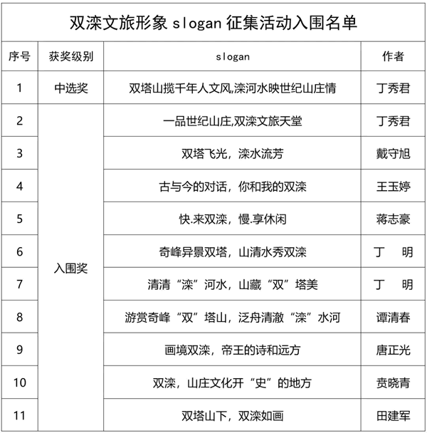 雙灤文旅形象slogan征集活動入圍名單