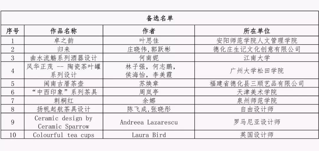 根據(jù)“何朝宗杯”2018中國(guó)(德化)茶具工業(yè)設(shè)計(jì)大賽評(píng)審細(xì)則,所有入圍參賽者(含備選作品名單)須于收到通知即日內(nèi)寄送實(shí)物至組委會(huì)辦公室,無(wú)法提供實(shí)物作品的可向組委會(huì)申請(qǐng)打樣協(xié)助。郵寄實(shí)物請(qǐng)根據(jù)下方地址寄送,3D源文件郵件則發(fā)送至下方郵箱。