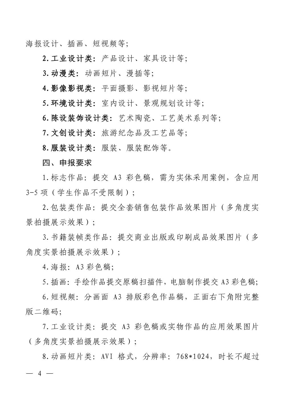 近兩年來完成的視覺傳達(dá)設(shè)計類、工業(yè)設(shè)計類、動漫類、影視影像類、環(huán)境設(shè)計類、陳設(shè)裝飾設(shè)計類、文創(chuàng)設(shè)計類、服裝設(shè)計類設(shè)計作品均可參加。