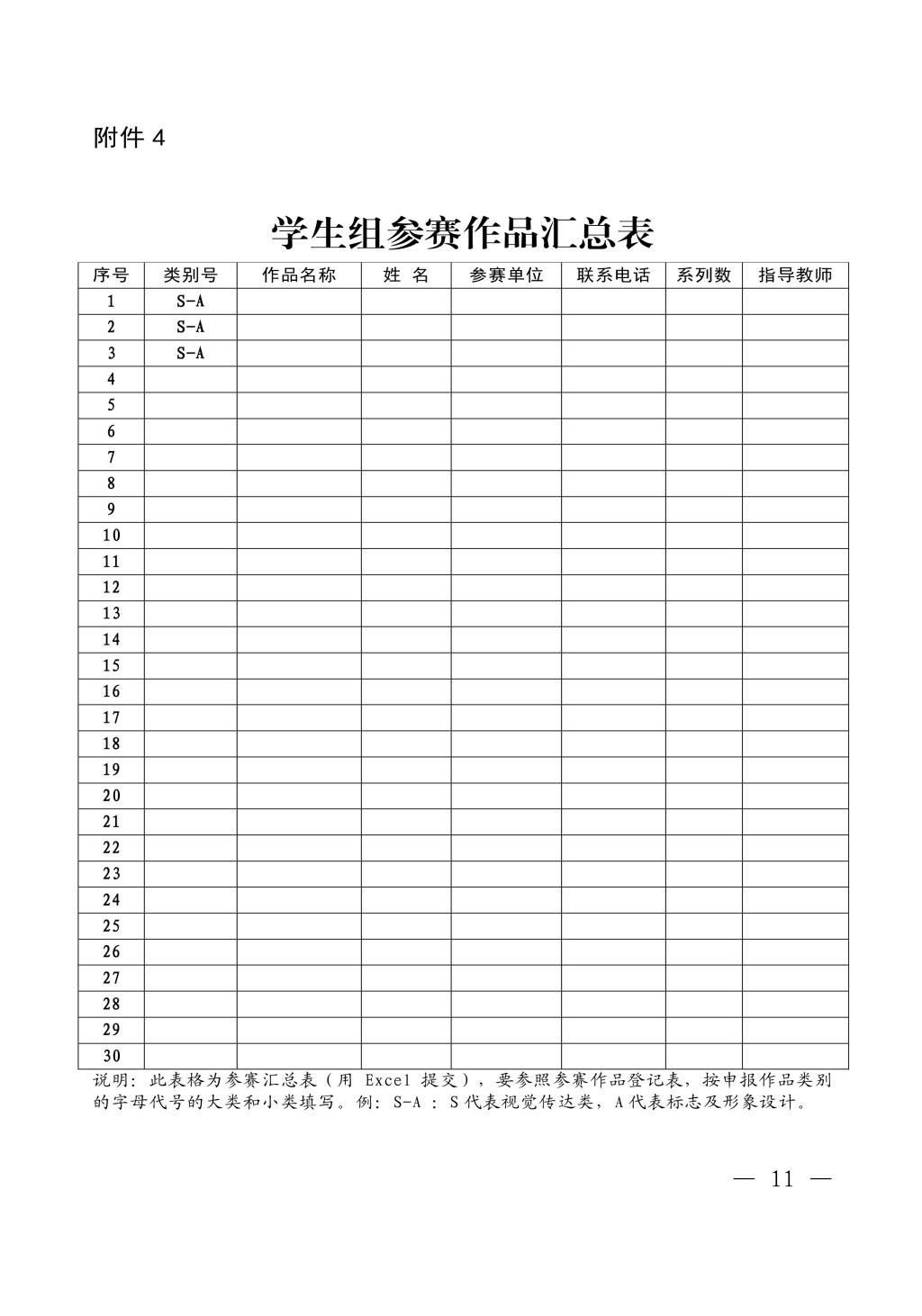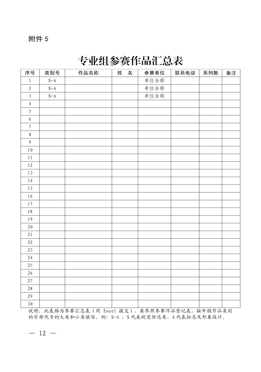 附件2 第二屆創(chuàng)意河南 參賽作品登記表(參賽單位用)附件3 第二屆創(chuàng)意河南 優(yōu)秀指導(dǎo)教師獎 最佳設(shè)計師獎(參賽單位用)附件4 第二屆 創(chuàng)意河南 參賽作品匯總表 學(xué)生組(參賽單位用)附件5 第二屆 創(chuàng)意河南 參賽作品匯總表 專業(yè)組(參賽單位用)附件6 第二屆 創(chuàng)意河南 參賽單位聯(lián)絡(luò)信息表(參賽單位用)