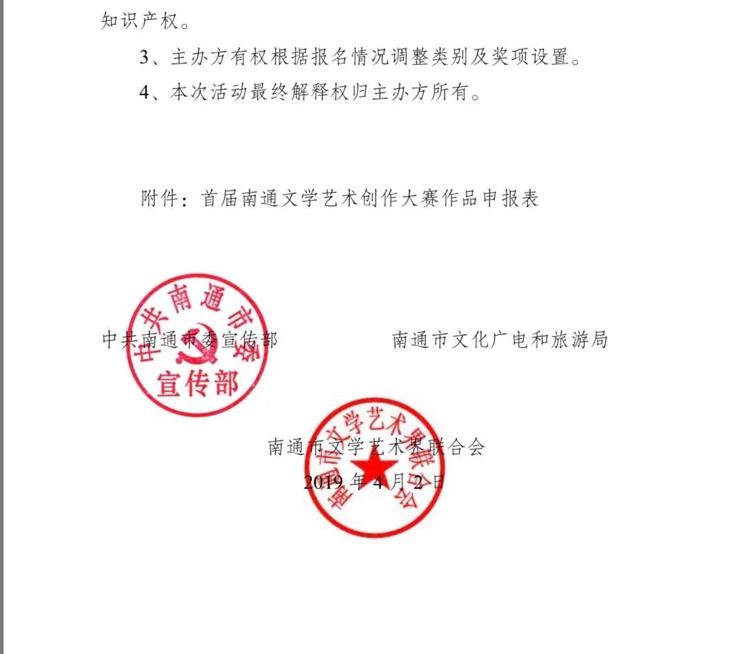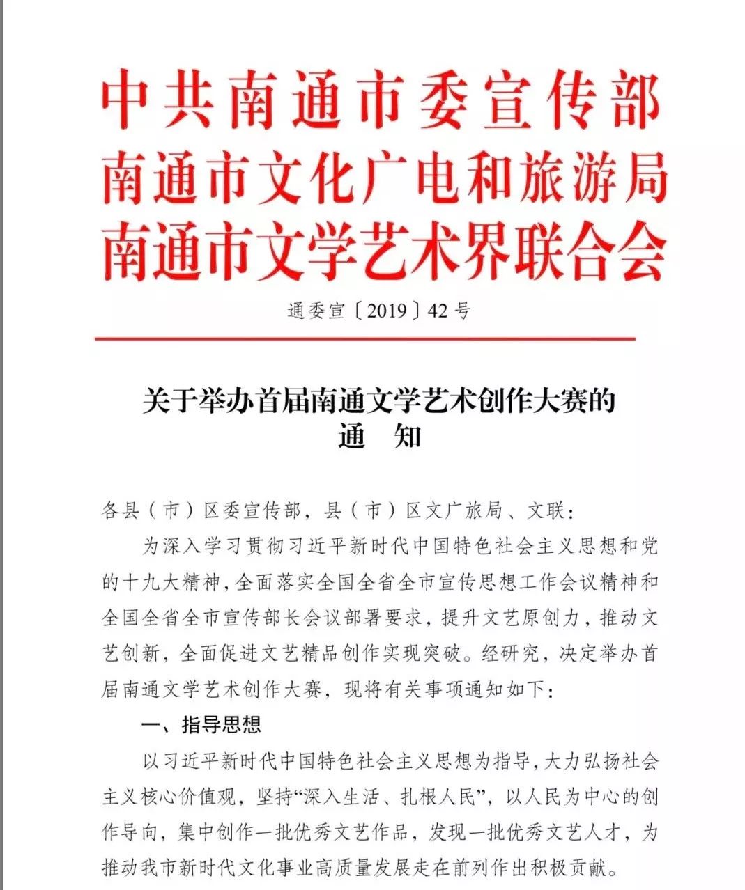 附:《關于舉辦首屆南通文學藝術創(chuàng)作大賽的通知》文件