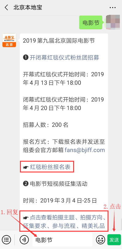 ??溫馨提示:掃描二維碼或微信搜索公眾號【北京本地寶 (ID:bdbbeijing)】,關(guān)注后在對話框回復(fù)【電影節(jié)】可查看2019北京國際電影節(jié)的相關(guān)活動(粉絲團招募、短視頻征集),后續(xù)還會有志愿者報名、電影節(jié)排片表、電影嘉年華時間門票等更多的信息,敬請關(guān)注~
