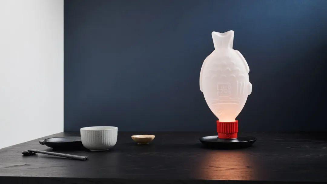 澳大利亞工作室 Heliograf的產(chǎn)品設(shè)計 Light Soy Table Lamp / Light Soy Pendant Light。 將大家熟悉的魚形迷你醬油容器放大造型,配合底座和燈罩,可以成為臺燈或吊燈。采用磨砂玻璃制成,更加擬真,也有恰當(dāng)?shù)臏厝釤艄狻?/p>