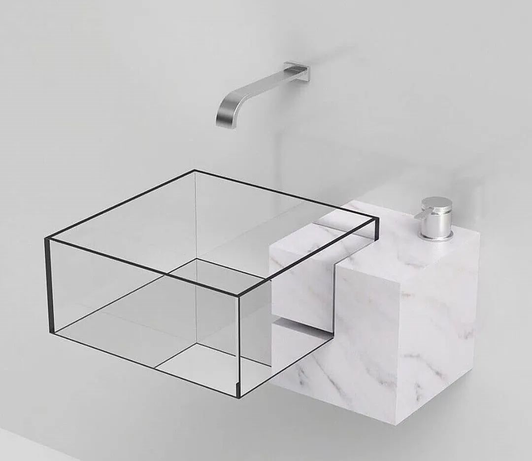 這組由大理石與玻璃組成浴室水槽名為—— Kub,有著極其簡約的幾何線條,簡約到幾乎隱形了一般。Victor Vasilev設(shè)計(jì)這組作品的目的在于探尋 以最純凈手法完成對兩種極端材料的設(shè)計(jì)與加工,最終的形態(tài)表達(dá)出材料的本質(zhì)與力量。
