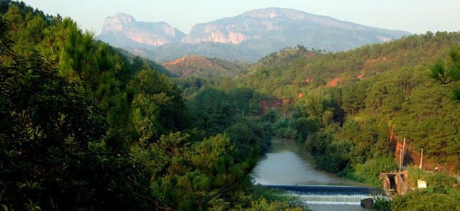 迎賓松,位于旅游區(qū)主車場(chǎng)西南約200米公路東側(cè),樹(shù)齡300余年,主干高近2米,直徑約0.7米,枝繁葉茂,氣勢(shì)崢嶸,樹(shù)冠若一把巨傘,上托青天,下遮大地,覆蓋面積約100平方米。因它長(zhǎng)勢(shì)往公路方向傾斜,兩枝杈又格外秀長(zhǎng),似躬身低頭,伸手迎接游客。故被美名為“迎賓松”。 叫人想起黃山的迎客松,但此松比黃山迎客松樹(shù)圍大,覆蓋面大,更具觀賞性。