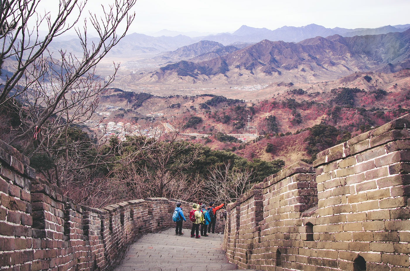 “鷹飛倒仰”長(zhǎng)城段是慕田峪長(zhǎng)城的一絕。長(zhǎng)城攀越而過(guò)的峭壁尖峰狀如鷹嘴倒立,嵯峨凌峭。山高風(fēng)疾,老鷹飛到這里都會(huì)被吹得身翻倒仰,可見(jiàn)長(zhǎng)城之險(xiǎn)峻風(fēng)猛。 長(zhǎng)城翻過(guò)高聳的尖峰,尖峰兩側(cè)的山坡一般非常陡峻,這樣的地段長(zhǎng)城非常驚險(xiǎn)。如鷹飛倒仰,一側(cè)是起立的懸崖,一側(cè)是大于70度角的陡坡。長(zhǎng)城從尖峰的一側(cè)爬到峰頂,又從另一側(cè)垂直下來(lái),高差達(dá)十米,每一臺(tái)階只有幾指寬,幾乎放不下一只腳的寬度。故形容既使老鷹也要仰著才能飛過(guò)去,故名“鷹飛倒仰”,奇險(xiǎn)無(wú)比。鷹飛倒仰的照片,成為視覺(jué)媒體中的極佳畫(huà)面。