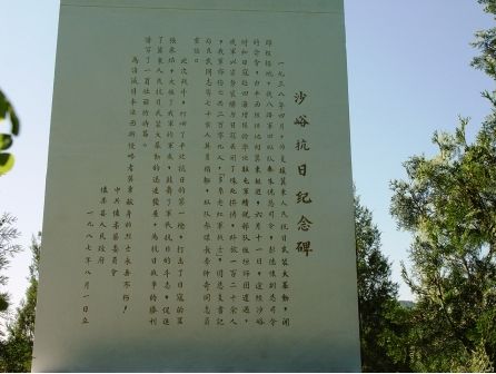 1938年4月,為支援冀東人民抗日武裝大暴動(dòng),開(kāi)辟根據(jù)地,我八路軍四縱隊(duì)奉朱德總司令、彭德懷副總司令的命令,由平西根據(jù)地向冀東挺進(jìn)。6月11日,途徑沙峪時(shí)和日寇從四海增援的精銳部隊(duì)遭遇,我軍以劣勢(shì)裝備與日寇展開(kāi)了殊死拼搏,殲敵一百二十余人,我軍傷亡共二百零八人(多系老紅軍戰(zhàn)士,團(tuán)黨支書(shū)記鄭良武同志等七十余人英勇捐軀,縱隊(duì)參謀長(zhǎng)李鐘奇同志負(fù)重傷)。