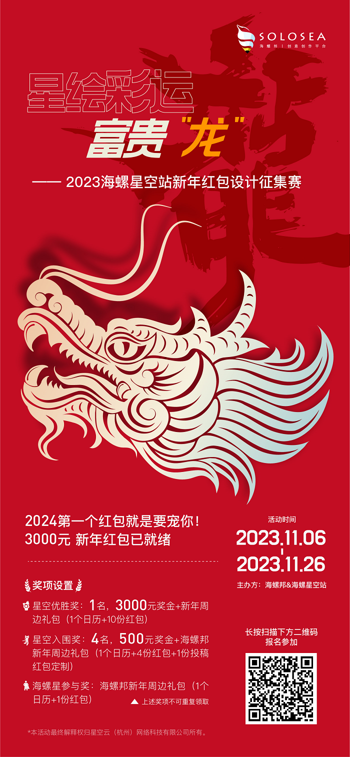 今年,我們期待更多設(shè)計(jì)師們的加入。無(wú)論你是夢(mèng)想成為設(shè)計(jì)界的明日之星,還是已經(jīng)閃耀著創(chuàng)意光芒的設(shè)計(jì)達(dá)人,這里都是你展現(xiàn)才華的舞臺(tái)!快來(lái)報(bào)名參加我們的紅包設(shè)計(jì)征集賽,讓你的作品成為海螺邦2024年獨(dú)特的新年禮物,讓你的創(chuàng)意在海螺星空站閃耀奪目! 最最最重要的是還有3000元獎(jiǎng)金等你贏?。?!還在等什么!趕緊報(bào)名參加!