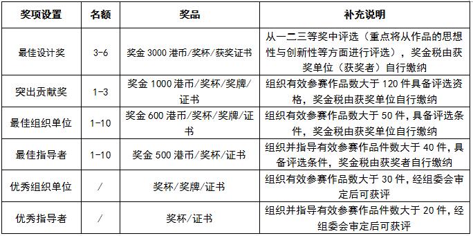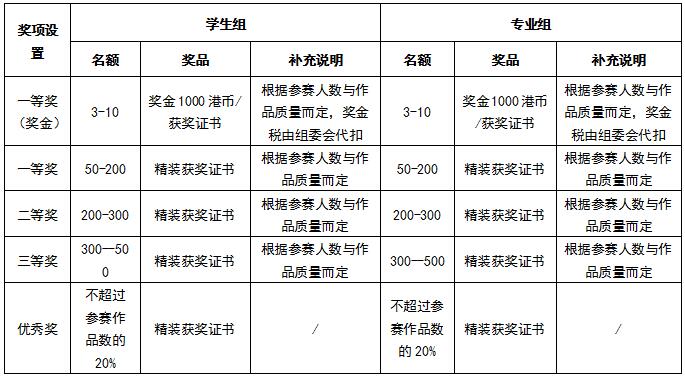 作品獎(jiǎng)項(xiàng)設(shè)置,詳請(qǐng)見(jiàn)下表: