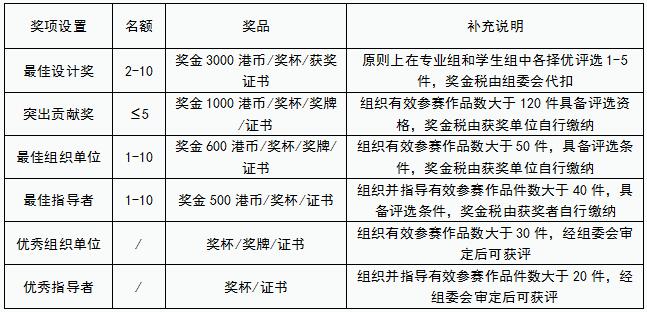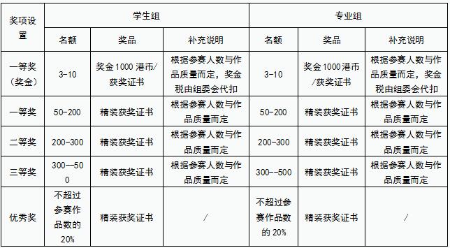 作品獎(jiǎng)項(xiàng)設(shè)置,詳請(qǐng)見下表: