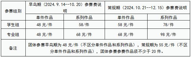 參賽報(bào)名費(fèi)由參賽單位和參賽者承擔(dān)。報(bào)名費(fèi)將用于賽事組織、作品評(píng)審、獎(jiǎng)金發(fā)放、證書獎(jiǎng)杯制作和快遞物流等工作事項(xiàng),未獲獎(jiǎng)作品將退還參賽費(fèi)用的90%。
