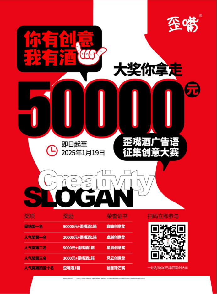 本次活動面向社會廣泛征集歪嘴酒廣告語,任何單位或個人、社會團體等均可投稿。