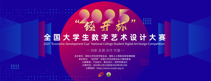 為進(jìn)一步促進(jìn)大學(xué)生對數(shù)字藝術(shù)創(chuàng)作的熱情和創(chuàng)造力,激發(fā)他們的設(shè)計潛力,并提供一個展示和交流的平臺。創(chuàng)賽網(wǎng)、國際大學(xué)生商學(xué)聯(lián)合會、國際人工智能創(chuàng)新發(fā)展聯(lián)盟、決定面向內(nèi)地及港澳臺地區(qū)聯(lián)合舉辦2025年“經(jīng)開杯”全國大學(xué)生數(shù)字藝術(shù)設(shè)計大賽,競賽將聚焦于未來科技與藝術(shù)的融合,鼓勵參賽者通過數(shù)碼技術(shù)的運用,呈現(xiàn)出獨特、創(chuàng)新的藝術(shù)作品。