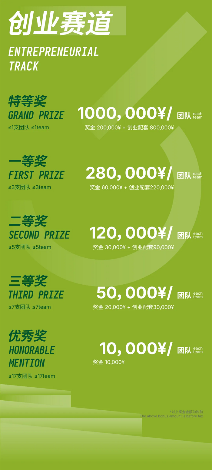 A chance to turn your entrepreneurial dreams into reality, with winning teams receiving up to 800,000 RMB in supporting funds.