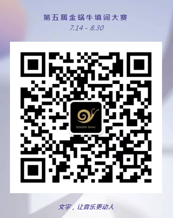 關(guān)注“金蝸牛俱樂部”微信官方公眾號(識別頁面底部二維碼)于“填詞大賽”菜單欄可直接手機(jī)端報名,按照要求填寫內(nèi)容,提交成功,即視為報名成功。