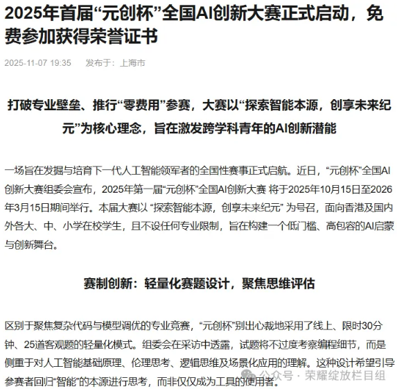 “人工智能不是替代創(chuàng)造力的工具,而是拓展想象力邊界的超級引擎。” ——「元創(chuàng)杯」組委會