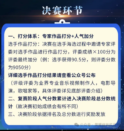 利用AI工具進行音樂視頻創(chuàng)作,在截止日期前 按要求提交最終作品 (音頻或視頻或圖片文件+簡短創(chuàng)作說明)。 Step3:初篩入圍- 組委會進行基礎審核(符合主題、技術應用、格式要求等), 公布入圍名單。 Step4:網(wǎng)絡復賽展評 - 入圍作品在官方平臺網(wǎng)絡展評。