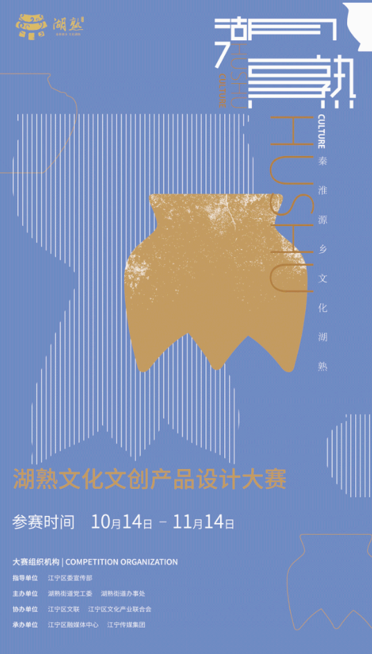 為完善湖熟的地域文化形象,推廣湖熟的知名度和影響力,挖掘和利用湖熟豐富的文化資源,發(fā)起主題為“印象湖熟”的文化文創(chuàng)產(chǎn)品設(shè)計大賽,全球各個設(shè)計創(chuàng)意領(lǐng)域征集作品,誠邀從事藝術(shù)與設(shè)計的專業(yè)人士、院校師生,以及對本大賽感興趣的各界人士積極投稿!