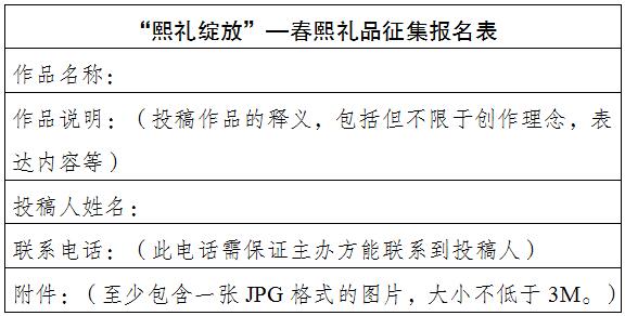 3、投稿作品時(shí),須同步附上作品圖片(能表現(xiàn)作品全貌的設(shè)計(jì)圖、成品圖等均可)、設(shè)計(jì)文字說(shuō)明及釋義,且在“春熙禮品”投稿的同一時(shí)間段內(nèi),投稿作品不得參與其他評(píng)選活動(dòng)。