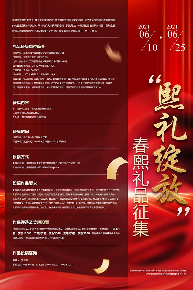 *本活動(dòng)最終解釋權(quán)歸成都市百年春熙建設(shè)投資發(fā)展有限責(zé)任公司所有。