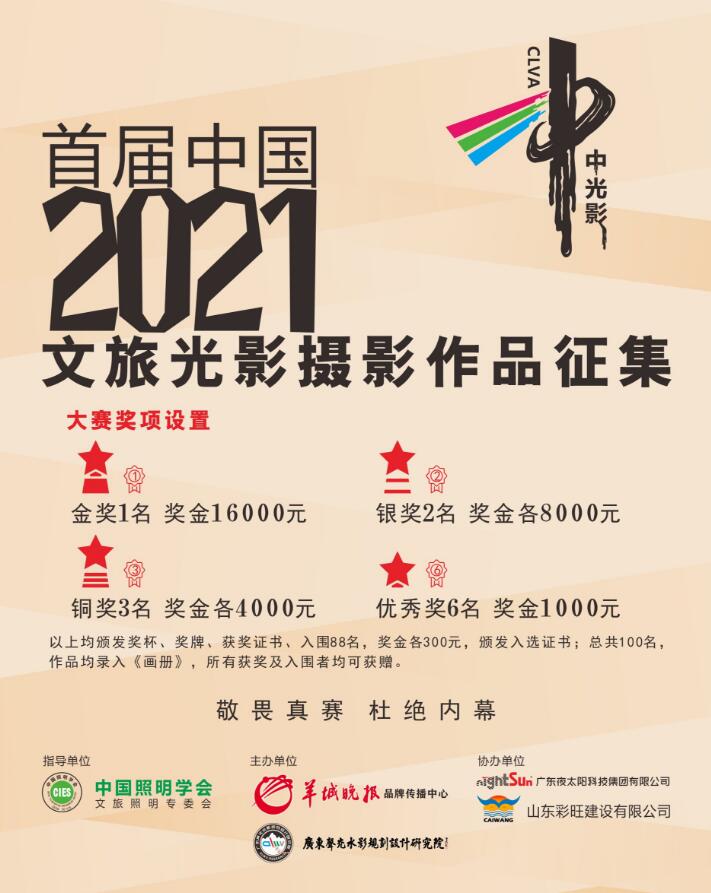 ■大賽頒獎盛典:暫定2021.9.20.在廣州舉行(具體時間地點,待通知),與“中國文旅光影設(shè)計大賽”同步啟動、進行。