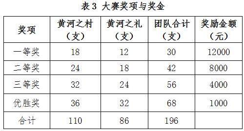 大賽獎項及獎金參見表3。