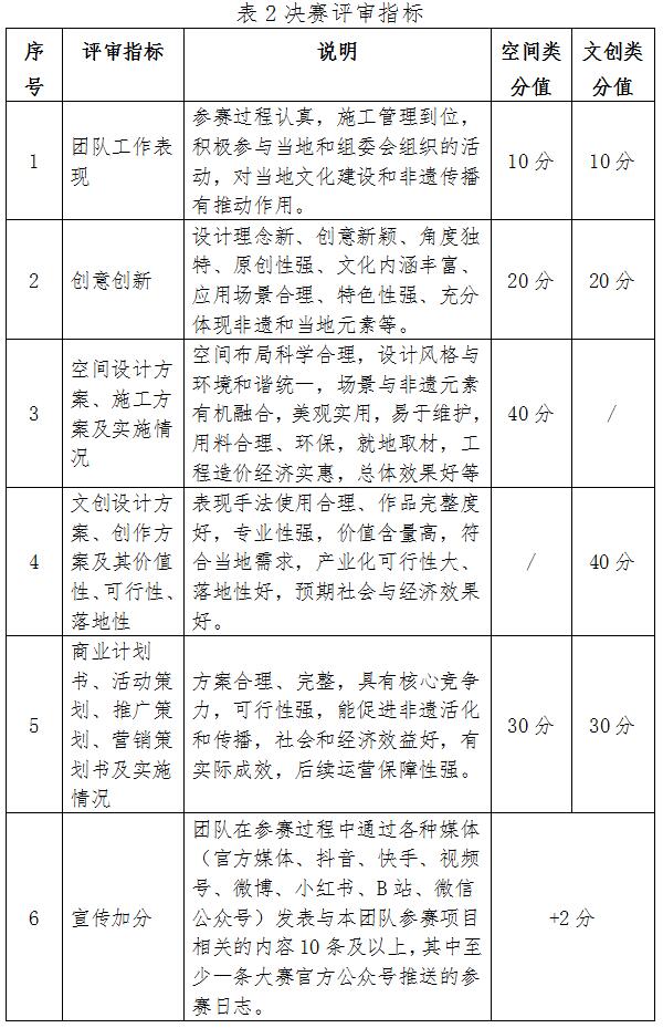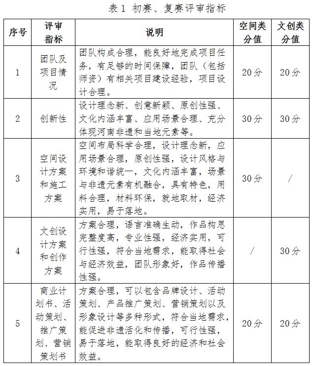 “黃河之村”(空間類)項目和“黃河之禮”(文創(chuàng)類)項目初賽、復賽評審指標與分值參見表1,決賽評審指標與分值參見表2。