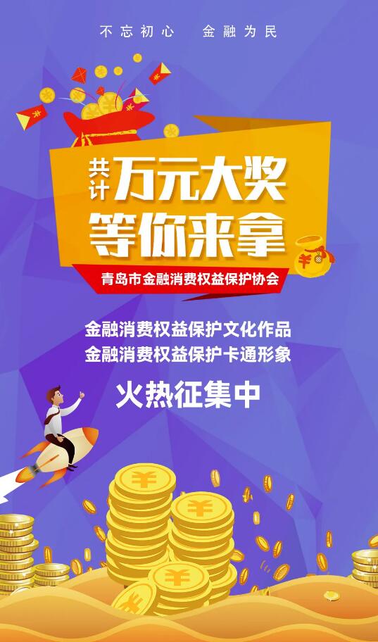 為加大金融消費(fèi)權(quán)益保護(hù)工作的宣傳普及力度,提高島城家庭的金融消保知識(shí)水平,青島市金融消費(fèi)權(quán)益保護(hù)協(xié)會(huì)決定舉辦第三屆“金消協(xié)杯”金融消保知識(shí)進(jìn)家庭文化作品大賽,同時(shí)開展征集青島市金融消費(fèi)權(quán)益保護(hù)卡通形象的活動(dòng),將擬人化卡通形象貫穿于金融知識(shí)宣傳中,提升金融消費(fèi)者體驗(yàn)和學(xué)習(xí)興趣,推動(dòng)全民金融知識(shí)普及和防詐騙意識(shí)提升。