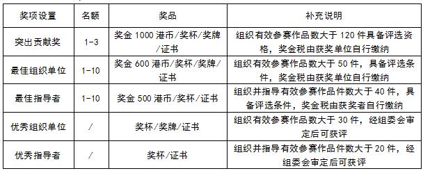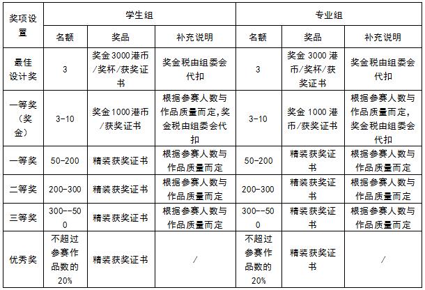 作品獎(jiǎng)項(xiàng)設(shè)置,詳請(qǐng)見(jiàn)下表: