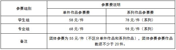 參賽報(bào)名費(fèi)由參賽單位和參賽者承擔(dān)。參賽費(fèi)將用于賽事組織、作品評(píng)審、獎(jiǎng)金發(fā)放、證書(shū)獎(jiǎng)杯制作和快遞物流等工作事項(xiàng),未獲獎(jiǎng)作品將退還參賽費(fèi)用的90%。