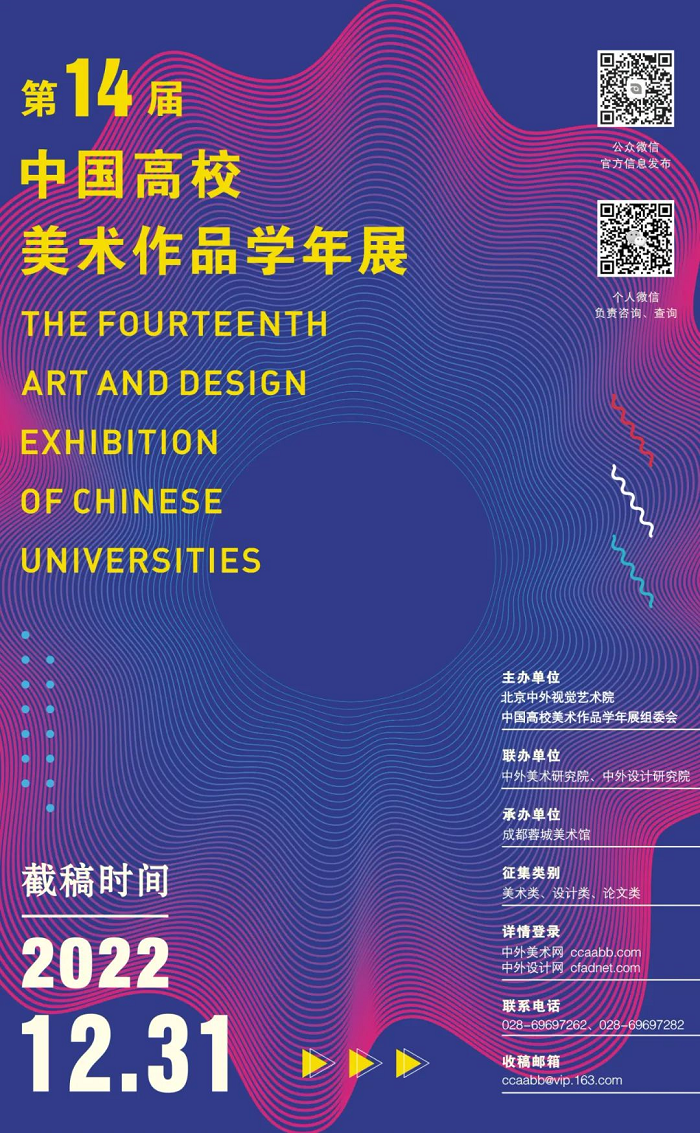 中國(guó)高校美術(shù)作品學(xué)年展自2009年創(chuàng)辦以來(lái),歷經(jīng)13年品格砥礪,涌現(xiàn)萬(wàn)千精品佳作,現(xiàn)已成為高等院校藝術(shù)教育改革的重要組成部分。學(xué)年展的成功創(chuàng)辦與逐年推進(jìn),對(duì)高等院校美術(shù)與設(shè)計(jì)教育的發(fā)展產(chǎn)生著重要的現(xiàn)實(shí)意義。第十四屆中國(guó)高校美術(shù)作品學(xué)年展大型藝術(shù)活動(dòng)于2022年9月在中國(guó)成都正式啟動(dòng),由北京中外視覺(jué)藝術(shù)院、中國(guó)高校美術(shù)作品學(xué)年展組委會(huì)主辦,成都蓉城美術(shù)館承辦的第十四屆中國(guó)高校美術(shù)作品學(xué)年展,必將又是一場(chǎng)全國(guó)高校藝術(shù)師生思想碰撞與多元互動(dòng)的藝術(shù)盛會(huì)。