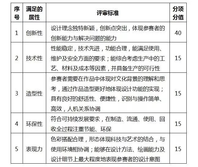 ①、參賽作品須符合國家產(chǎn)業(yè)政策及有關(guān)技術(shù)、標(biāo)準(zhǔn)等規(guī)定,符合低碳、綠色、環(huán)保設(shè)計(jì)理念,在功能、結(jié)構(gòu)、技術(shù)、形態(tài)、材料、工藝、節(jié)能、環(huán)保等方面有較大創(chuàng)新。