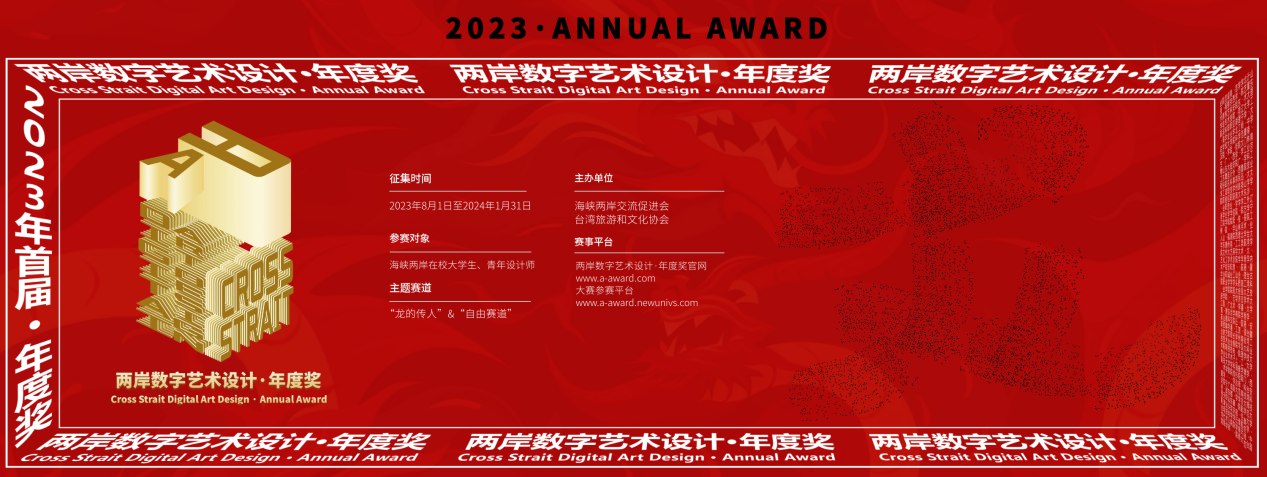 為貫徹落實黨中央、國務(wù)院工作部署激發(fā)兩岸青年互學(xué)互鑒,促進兩岸同胞心靈契合。由海峽兩岸交流促進會、臺灣旅游和文化協(xié)會牽頭,亞太青年設(shè)計師協(xié)會、臺灣國際文化創(chuàng)意產(chǎn)業(yè)發(fā)展協(xié)會、廣東非物質(zhì)文化遺產(chǎn)基金會、高教創(chuàng)賽云競賽服務(wù)平臺及兩岸文創(chuàng)單位和多所大學(xué)的師生支持下,將共同舉辦2023首屆兩岸數(shù)字藝術(shù)設(shè)計年度獎。