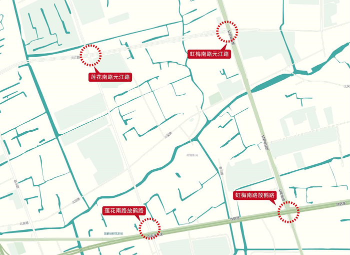 參賽作品需以蓮花產(chǎn)業(yè)社區(qū)為設(shè)計(jì)范圍,請(qǐng)?jiān)谝韵聟^(qū)域選擇至少一處進(jìn)行雕塑及景觀設(shè)計(jì),可包含區(qū)域內(nèi)的城市家具設(shè)計(jì)。(1、虹梅南路元江路 2、虹梅南路放鶴路 3、蓮花南路元江路 4、蓮花南路放鶴路)