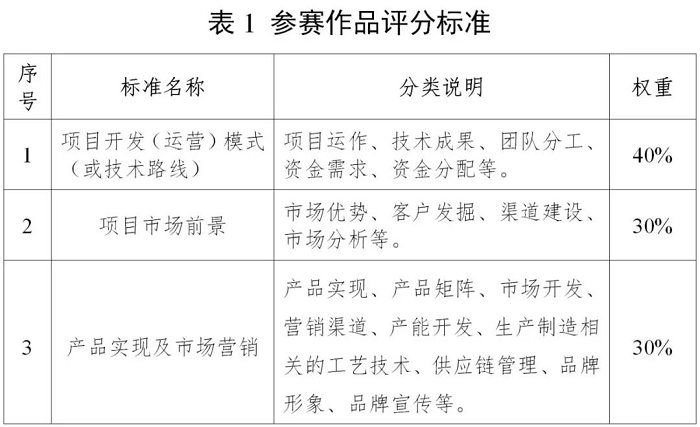 參賽作品具體評分標(biāo)準(zhǔn)如表所示。