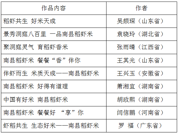 一、南縣稻蝦米廣告語(yǔ)入圍作品: